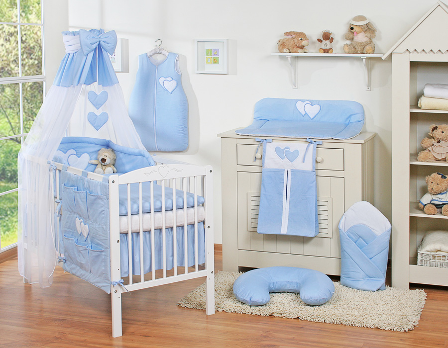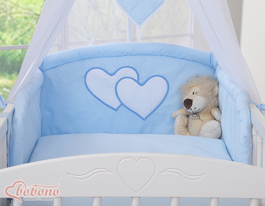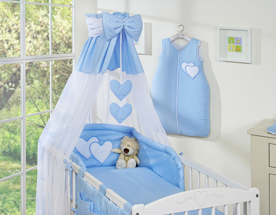 11-osainen vuodevaatesetti vauvalle + katosverho - Hanging Hearts
