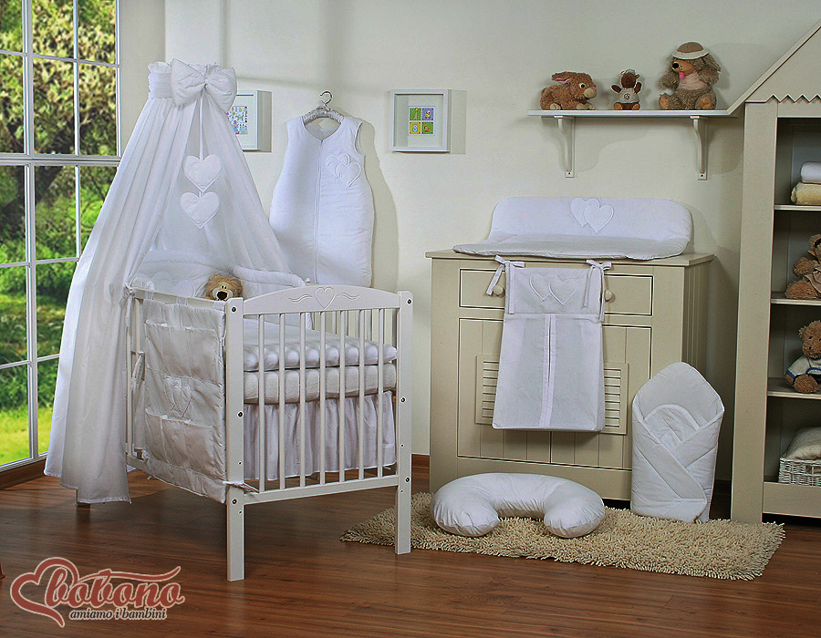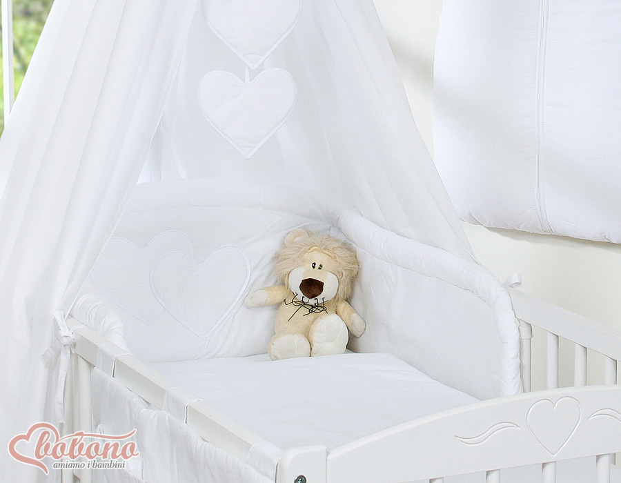 11-osainen vuodevaatesetti vauvalle + katosverho - Hanging Hearts