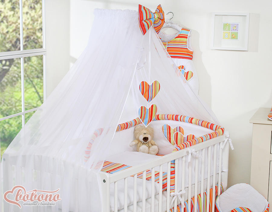11-osainen vauvan pussilakanasetti ja hyttysverkko - Hanging Hearts Oranssi Raidat