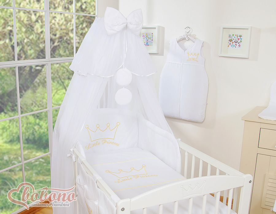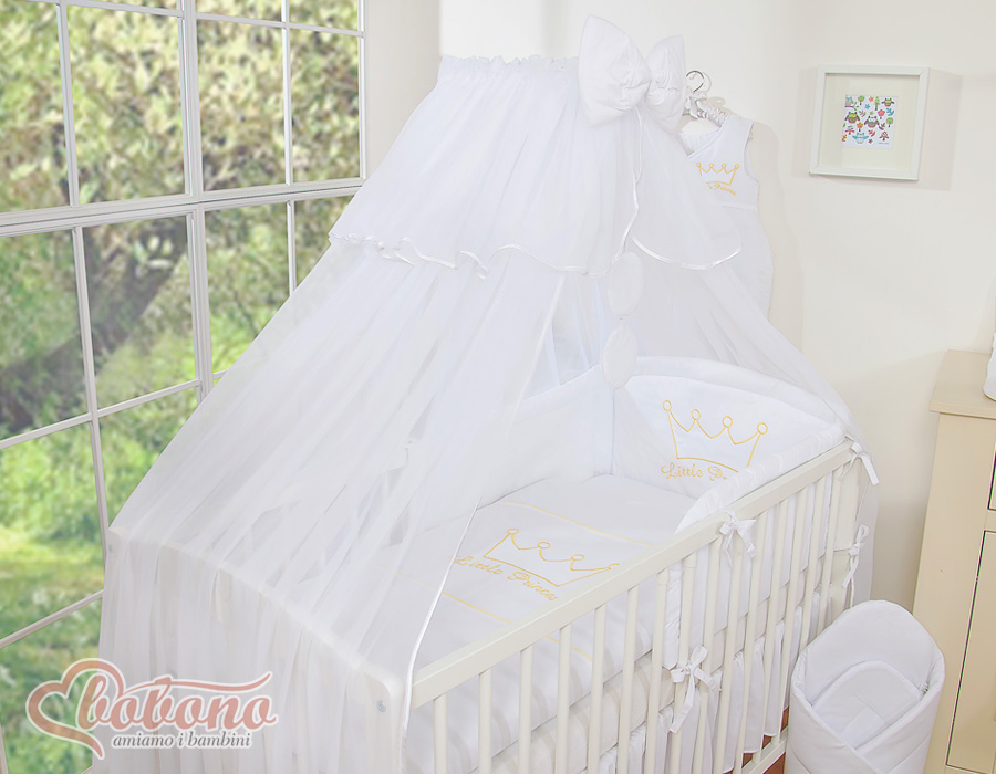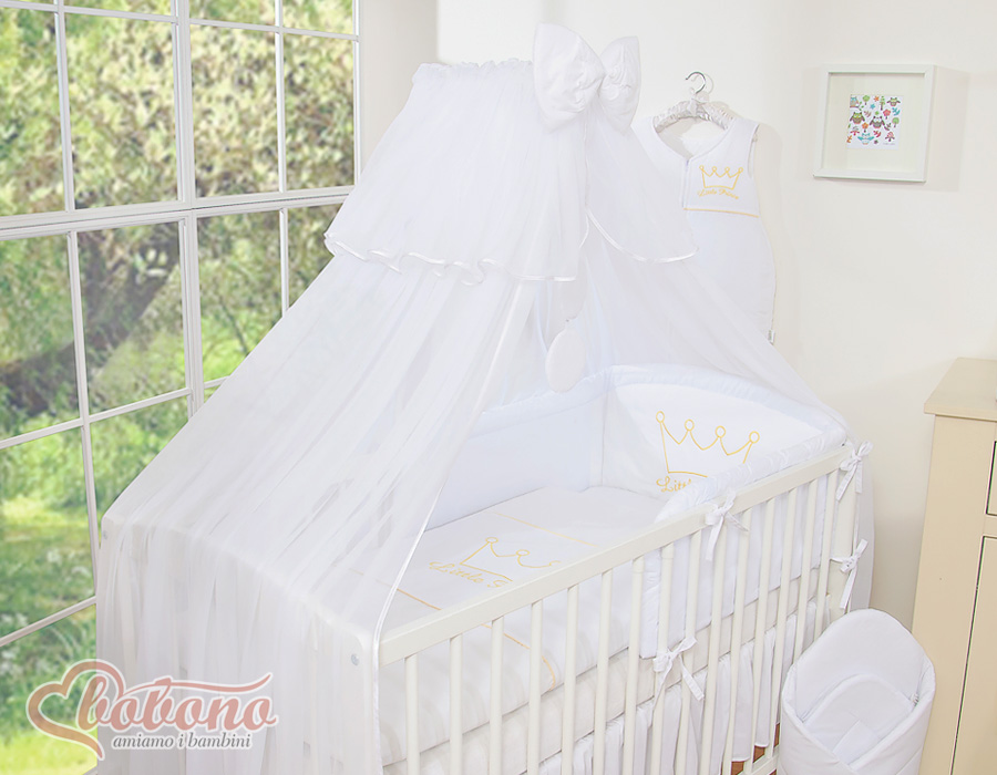 11-osainen vauvan pussilakanasetti ja hyttysverkko - Pikkuprinssi / Pikkuprinsessa Valkoinen