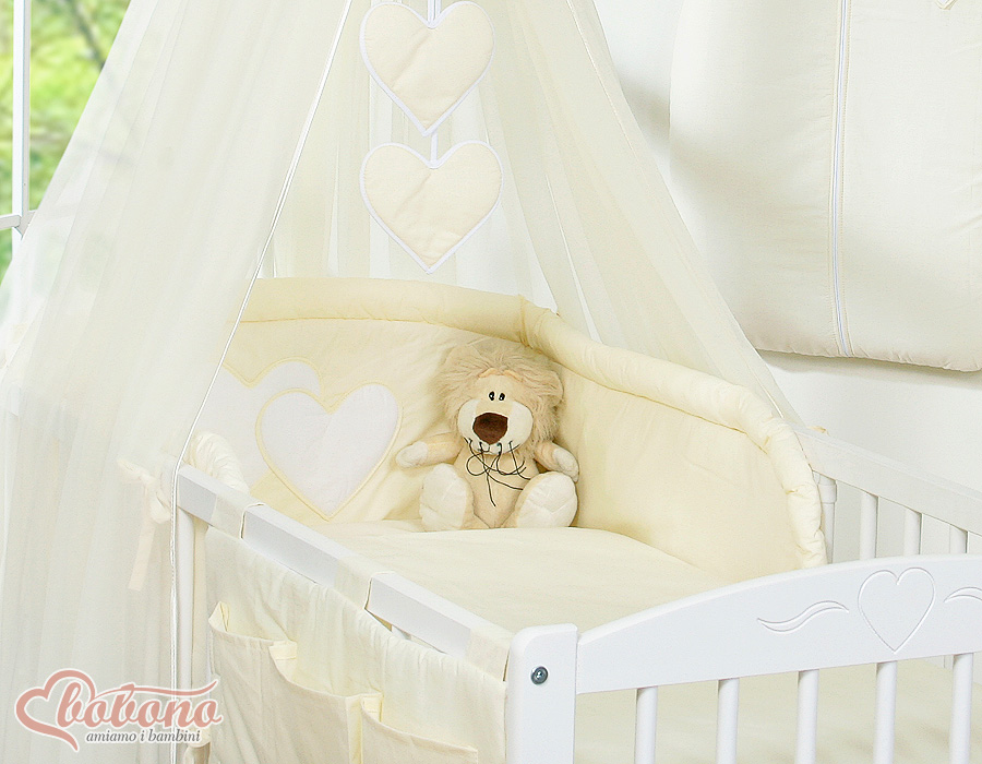11-osainen vauvan vuodevaatesetti + katosverho - Leijuvat Sydämet Norsunluu