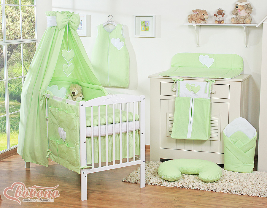 Etusivu » Vuodevaatesetit pinnasänkyyn » Vuodevaatesetit Sydämet » Vuodevaatesetit pinnasänkyyn 120cm Sydämet » 11-os Pussilakanasetti pinnasänkyyn Katosverho Sydämet » 11-osainen vuodevaatesetti ja hyttysverkko - Leijuvat Sydämet Vihreä Valkoisilla Pilkuilla