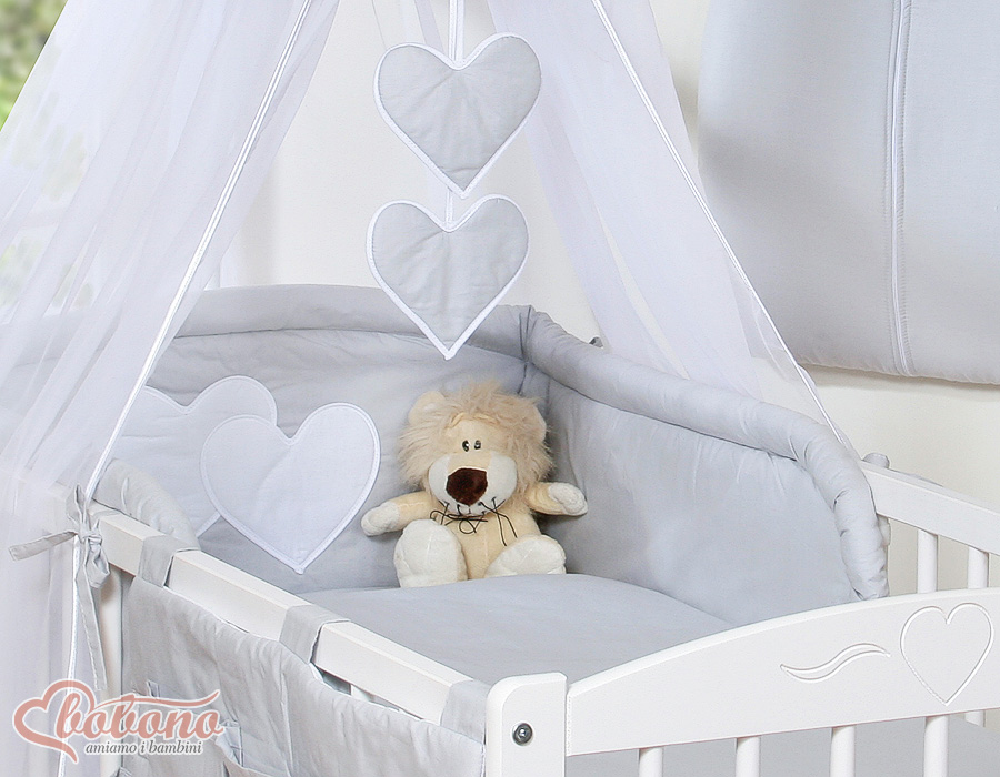 11-osainen vuodevaatesetti vauvalle + katosverho - Hanging Hearts