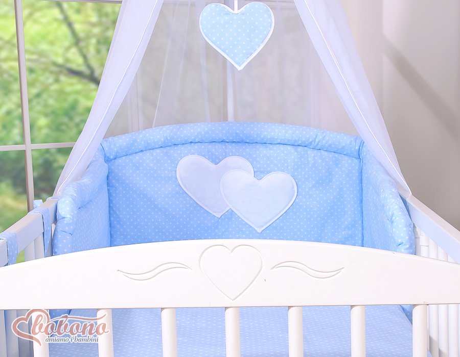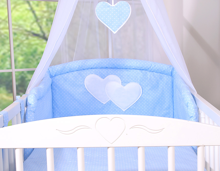 11-osainen vuodevaatesetti vauvalle + katosverho - Hanging Hearts