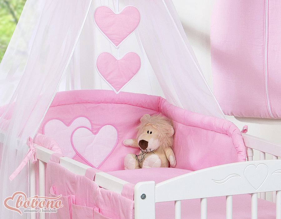 11-osainen vuodevaatesetti vauvalle + katosverho - Hanging Hearts Vaaleanpunainen Ruutukuvio Tytölle180.09 €