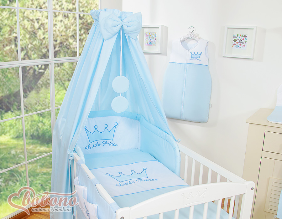 11-osainen vuodevaatesetti vauvalle + katosverho - Little Prince/Princess