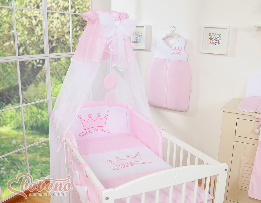11-osainen vuodevaatesetti + katosverho - Little Prince/Princess Vaaleanpunainen