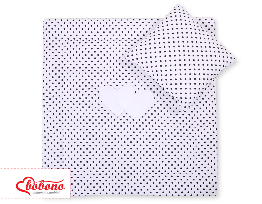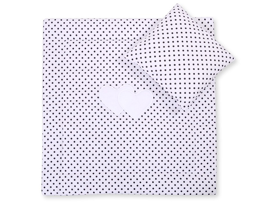 Etusivu » Vuodevaatesetit pinnasänkyyn » Vuodevaatesetit Sydämet » Vaunutekstiilisetti » 2-osainen petisetti vaunuihin - Hanging Hearts Musta Valkoisilla Pilkuilla