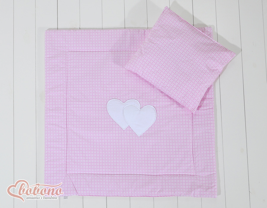 2-osainen petisetti vaunuihin - Hanging Hearts Vaaleanpunainen Ruutukuvio