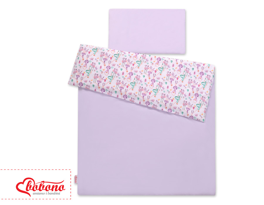 Etusivu » Vuodevaatesetit pinnasänkyyn » Lasten Pussilakanasetti » Pussilakanasetti 140x200cm JUNIOR » 2-osainen pussilakanasetti 140x200 Junior - Violetti Ballerinat