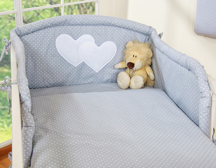 Etusivu » Vuodevaatesetit pinnasänkyyn » Vuodevaatesetit Sydämet » Vuodevaatesetit pinnasänkyyn 120cm Sydämet » 3-os Pussilakanasetti pinnasänkyyn Sydämet » 2-osainen pussilakanasetti Harmaa Valkoisilla Pilkuilla