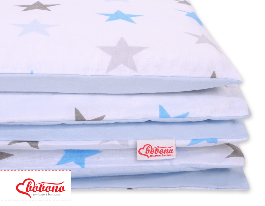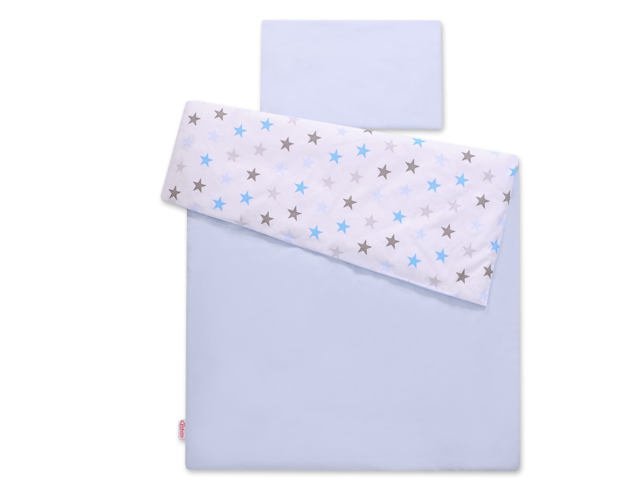 Etusivu » Vuodevaatesetit pinnasänkyyn » Lasten Pussilakanasetti » Pussilakanasetti 100x135cm MINI » 2-osainen pussilakanasetti vauvalle - 100x135 Mini - Harmaa Sininen