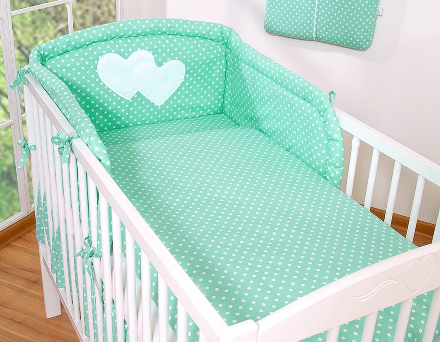 Etusivu » Vuodevaatesetit pinnasänkyyn » Vuodevaatesetit Sydämet » Vuodevaatesetit pinnasänkyyn 120cm Sydämet » 3-os Pussilakanasetti pinnasänkyyn Sydämet » 2-osainen pussilakanasetti vauvalle - Hanging Hearts Minttu