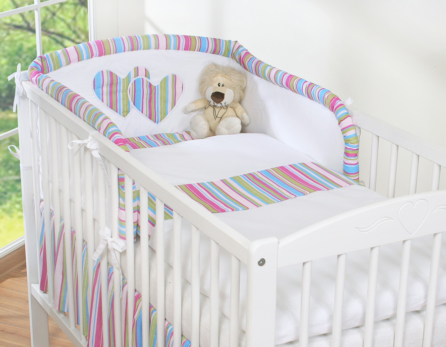2-osainen pussilakanasetti vauvalle - Hanging Hearts Violetti Raidat