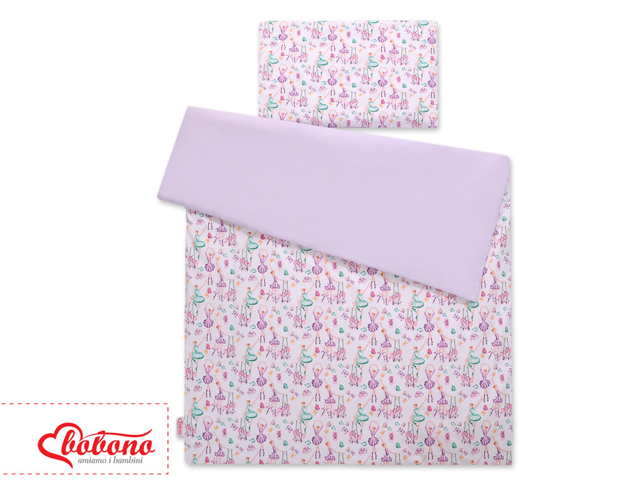 Etusivu » Vuodevaatesetit pinnasänkyyn » Lasten Pussilakanasetti » Pussilakanasetti 100x135cm MINI » 2-osainen vuodevaatesetti - 100x135 Mini - Violetti Ballerinat