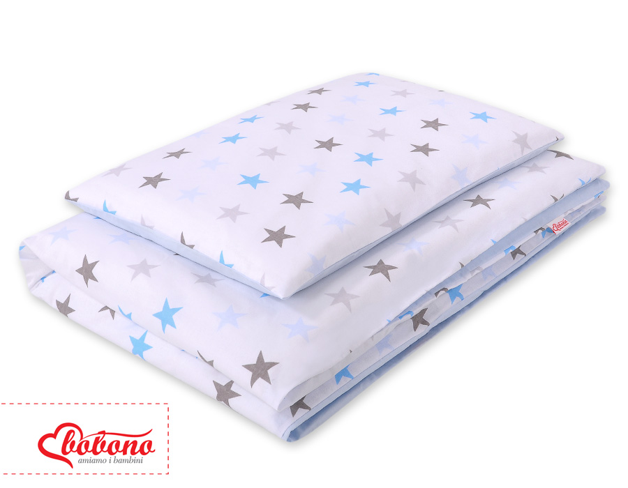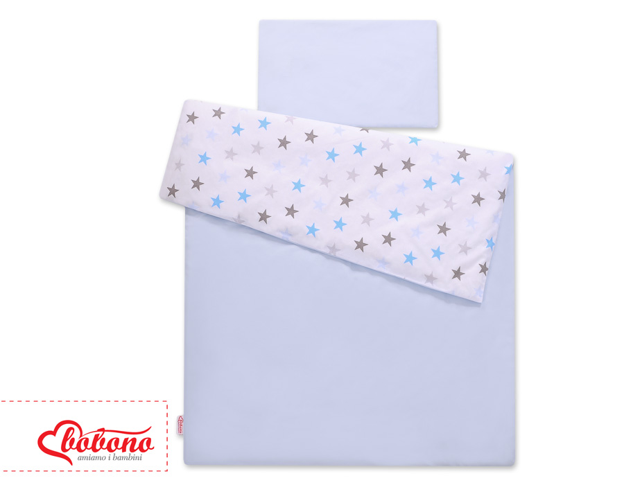 Etusivu » Vuodevaatesetit pinnasänkyyn » Lasten Pussilakanasetti » Pussilakanasetti 140x200cm JUNIOR » 2-osainen vuodevaatesetti 140x200 Junior - Harmaa Sininen