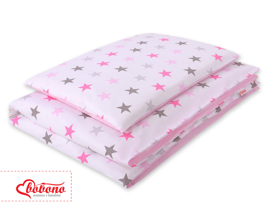 Etusivu » Vuodevaatesetit pinnasänkyyn » Lasten Pussilakanasetti » Pussilakanasetti 140x200cm JUNIOR » 2-osainen vuodevaatesetti 140x200 Junior - Vaaleanpunainen Harmaa