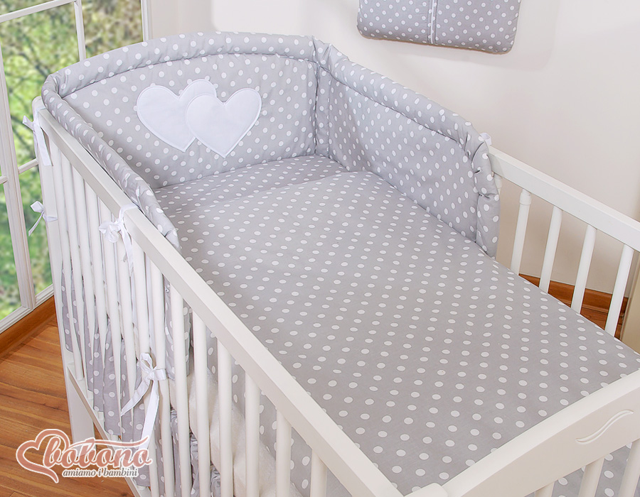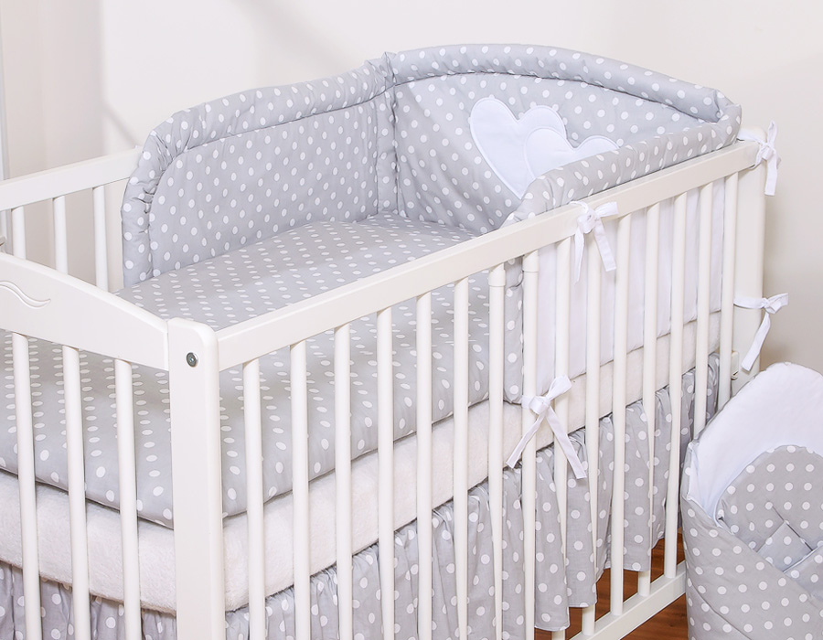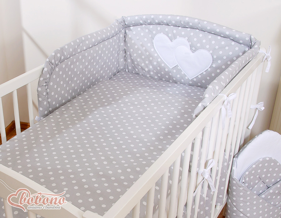 Etusivu » Vuodevaatesetit pinnasänkyyn » Vuodevaatesetit Sydämet » Vuodevaatesetit pinnasänkyyn 120cm Sydämet » 3-os Pussilakanasetti pinnasänkyyn Sydämet » 2-osainen vuodevaatesetti - Hanging Hearts Harmaa Valkoisilla Pilkuilla