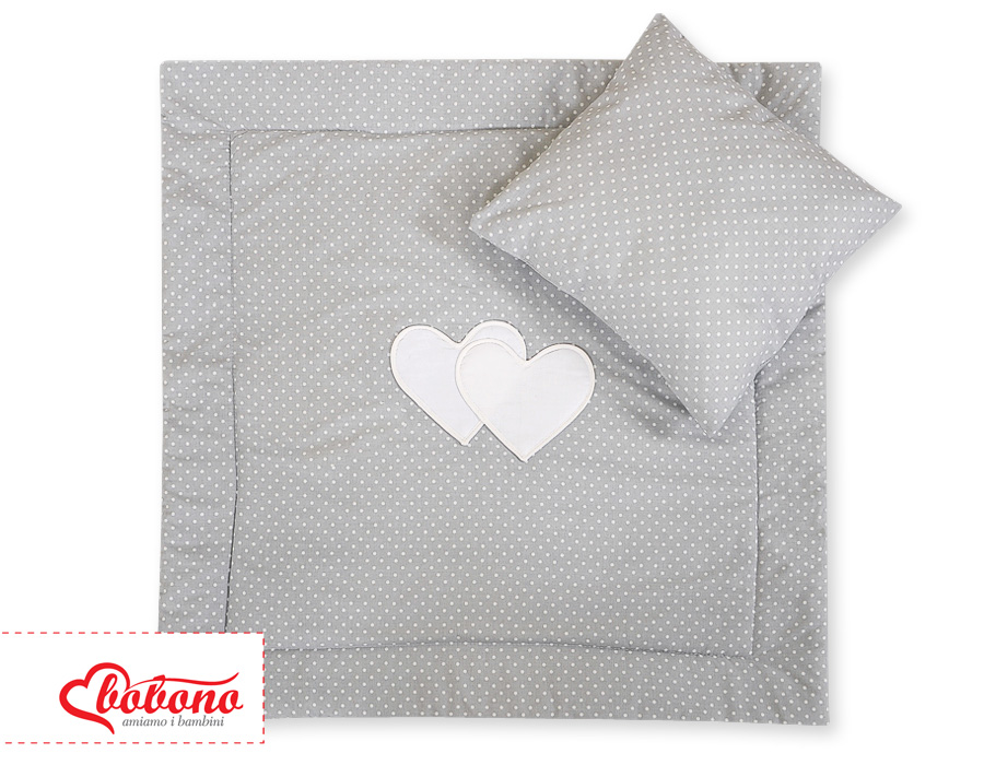 2-osainen vuodevaatesetti vaunuihin - Hanging Hearts Harmaa Valkoisilla Pilkuilla
