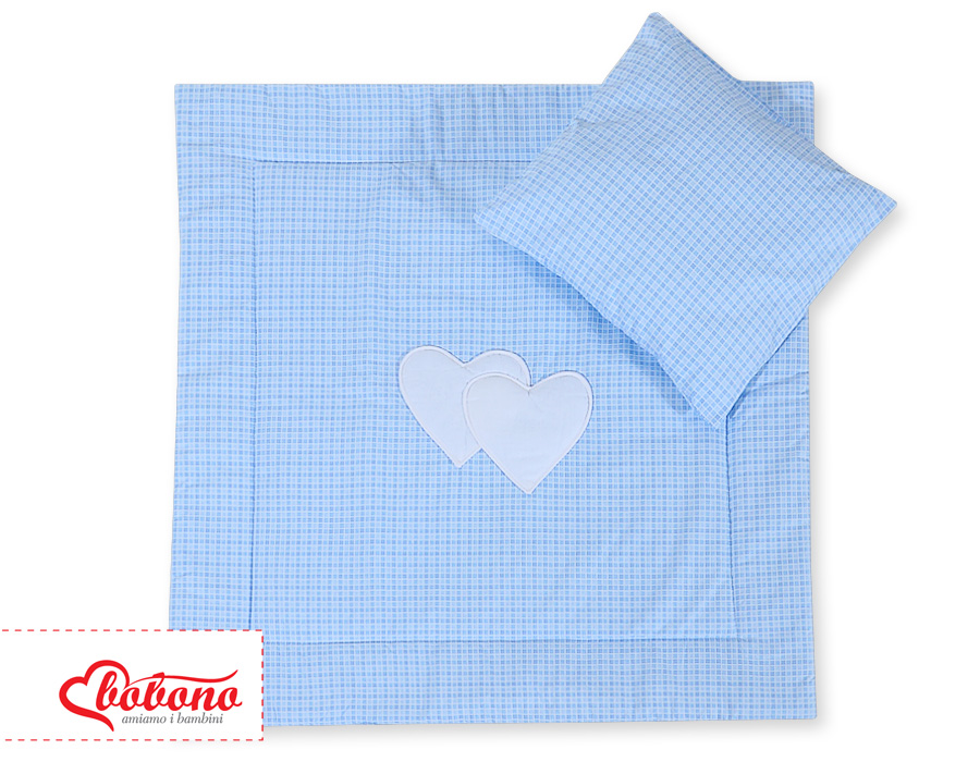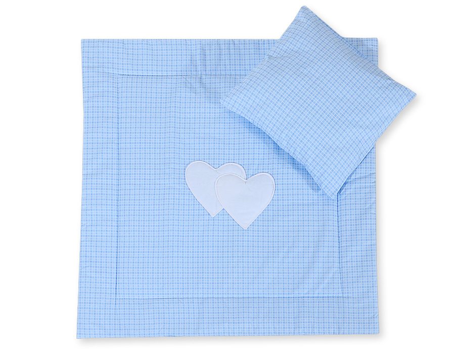 2-osainen vuodevaatesetti vaunuihin - Hanging Hearts Sininen Ruutukuvio