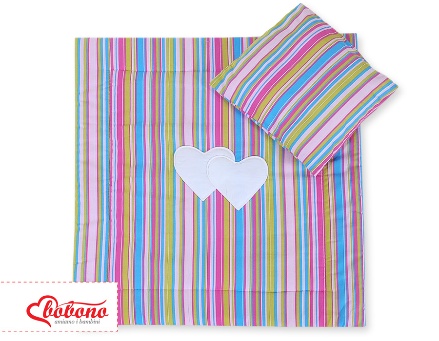 2-osainen vuodevaatesetti vaunuihin - Hanging Hearts Violetti Raidat