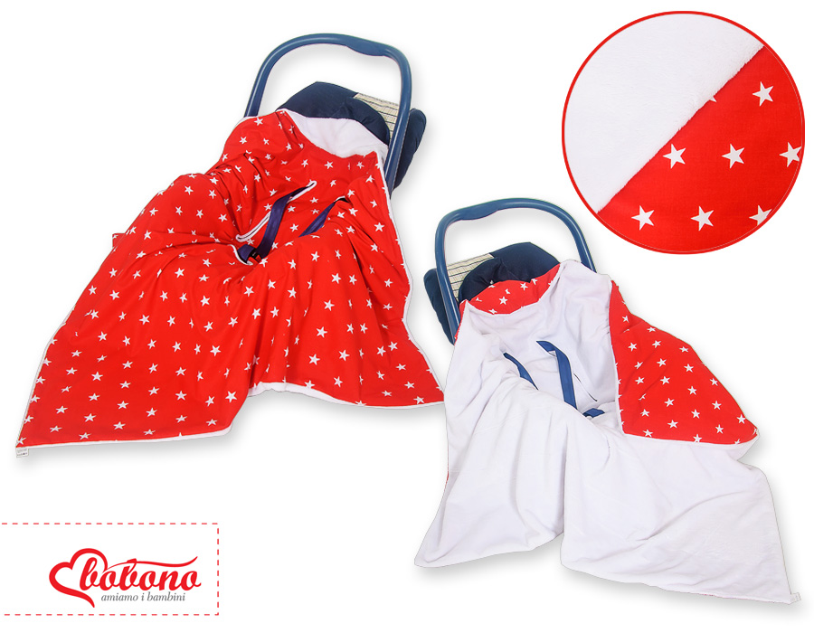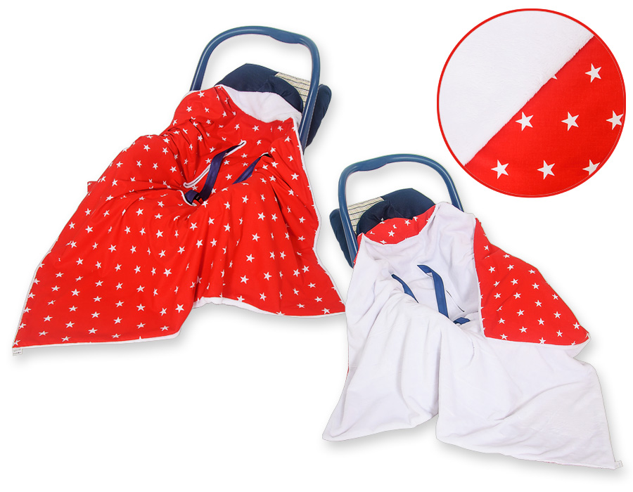 Ihanan pörheä ja lämmin kaksipuoleinen viltti auton turvaistuimeen. Suojaa lasta paleltumiselta moitteetta.
