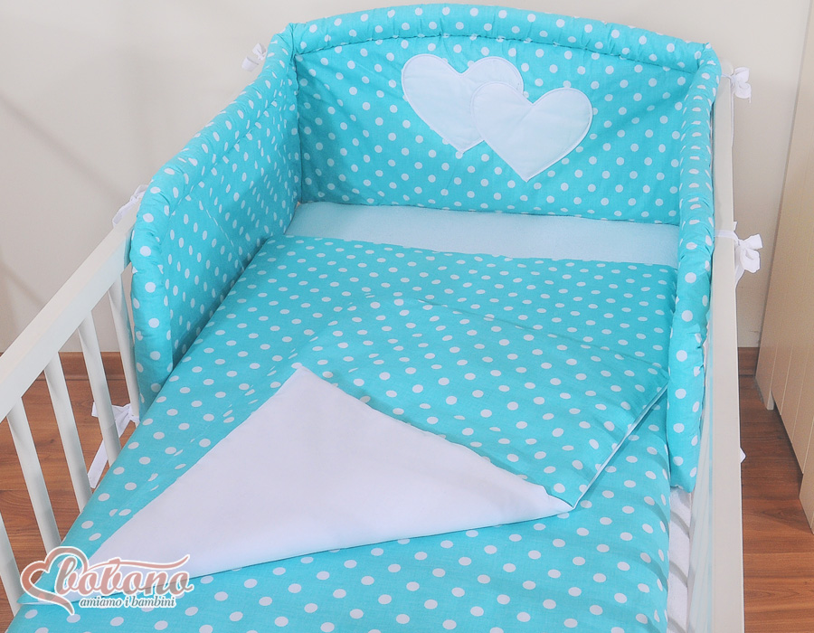 Etusivu » Vuodevaatesetit pinnasänkyyn » Vuodevaatesetit Sydämet » Vuodevaatesetit pinnasänkyyn 120cm Sydämet » 2-os Pussilakanasetti pinnasänkyyn Sydämet » 3-osainen vuodevaatesetti pinnasänkyyn Turkoosi Valkoisilla Pilkuilla