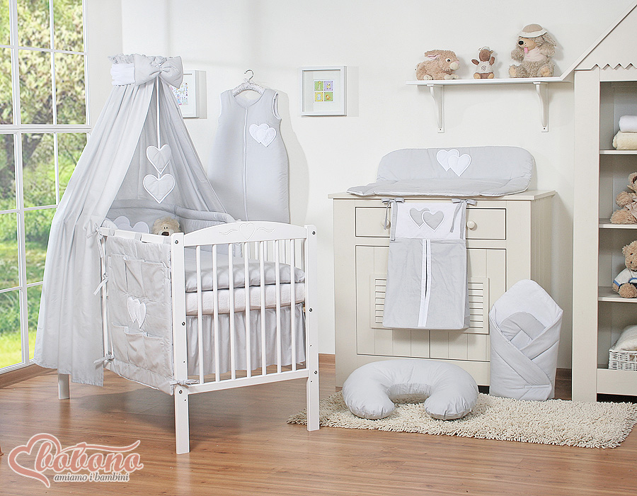 5-osainen vuodevaatesetti vauvalle + katosverho - Hanging Hearts