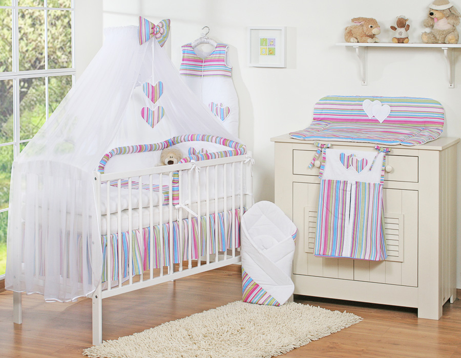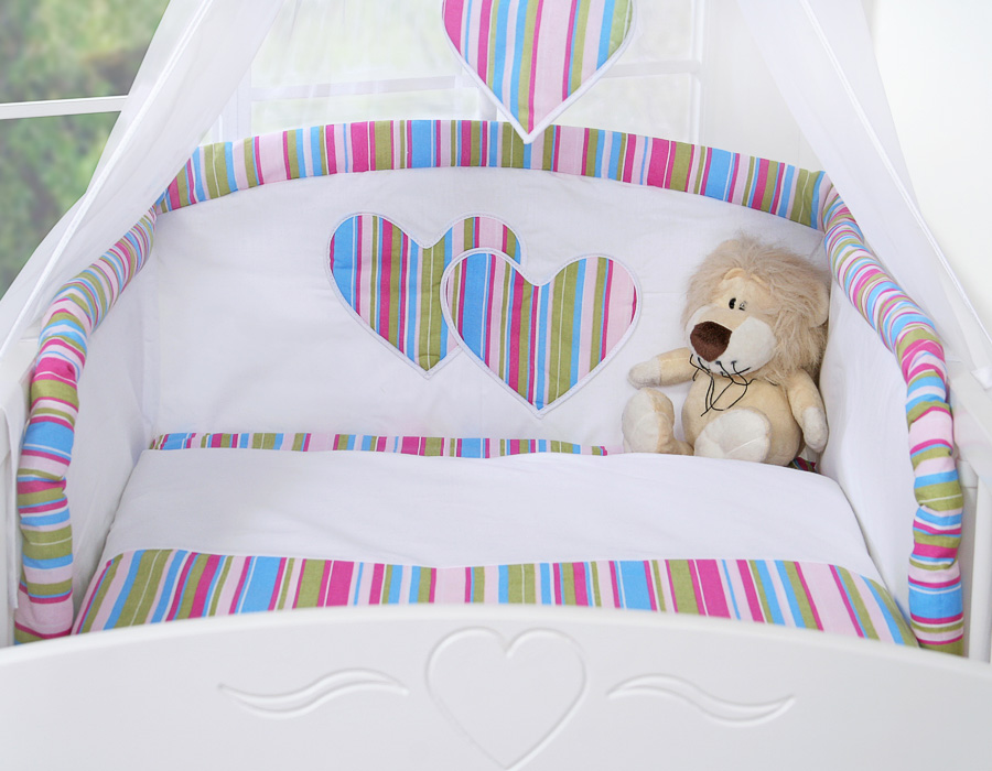 5-osainen vuodevaatesetti vauvalle + hyttysverkko - Hanging Hearts Musta Valkoisilla Pilkuilla89.58 €