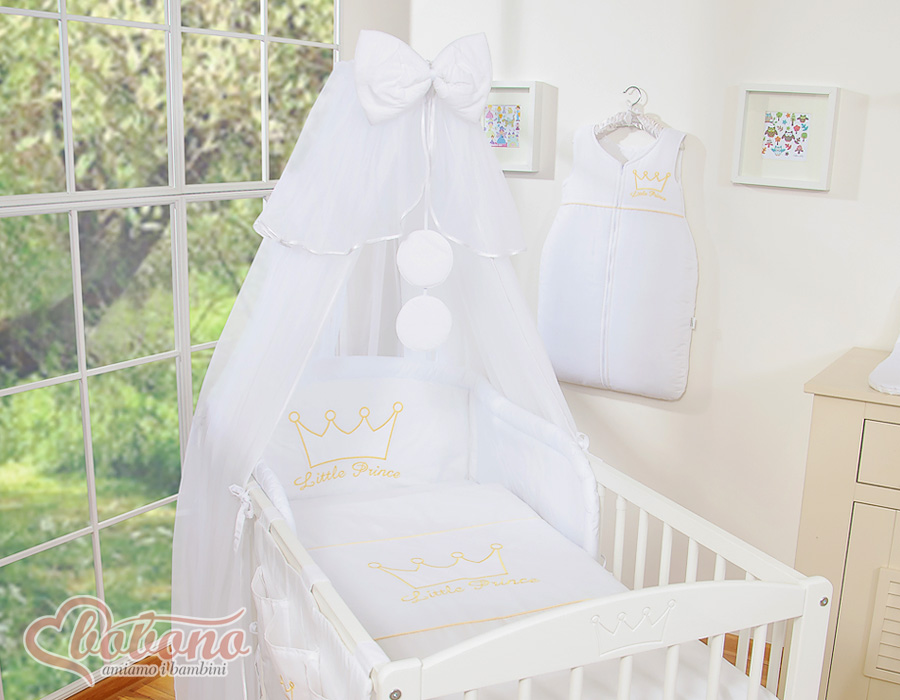 5-osainen vuodevaatesetti ja katosverho - Little Prince/Princess Valkoinen
