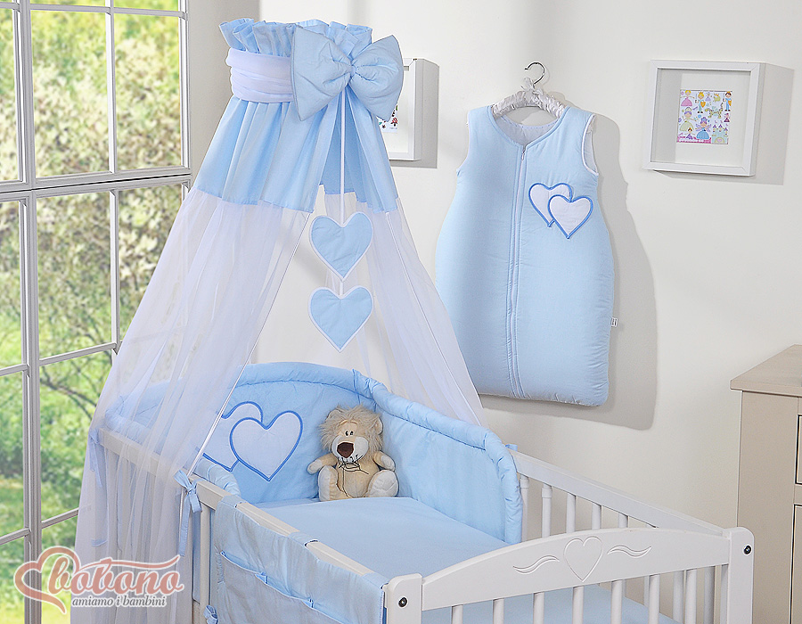 5-osainen vuodevaatesetti vauvalle + katosverho - Hanging Hearts