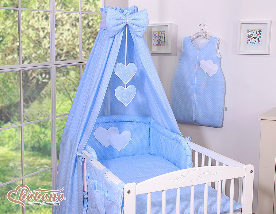 5-osainen vuodevaatesetti vauvalle + katosverho - Hanging Hearts