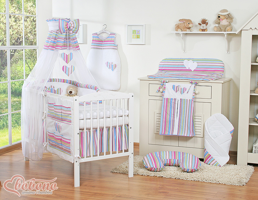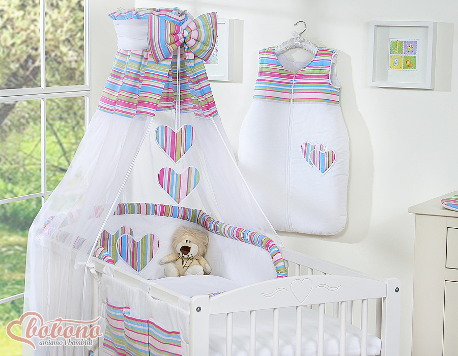 5-osainen vuodevaatesetti vauvalle + katosverho - Hanging Hearts