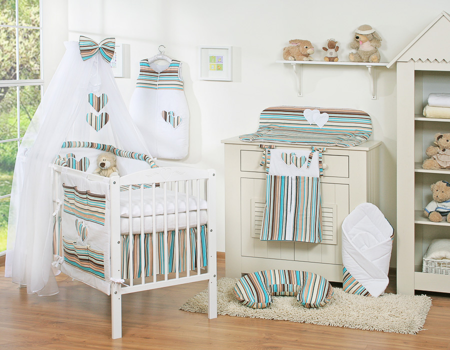 5-osainen vuodevaatesetti vauvalle + hyttysverkko - Hanging Hearts Harmaa Valkoisilla Pilkuilla89.58 €