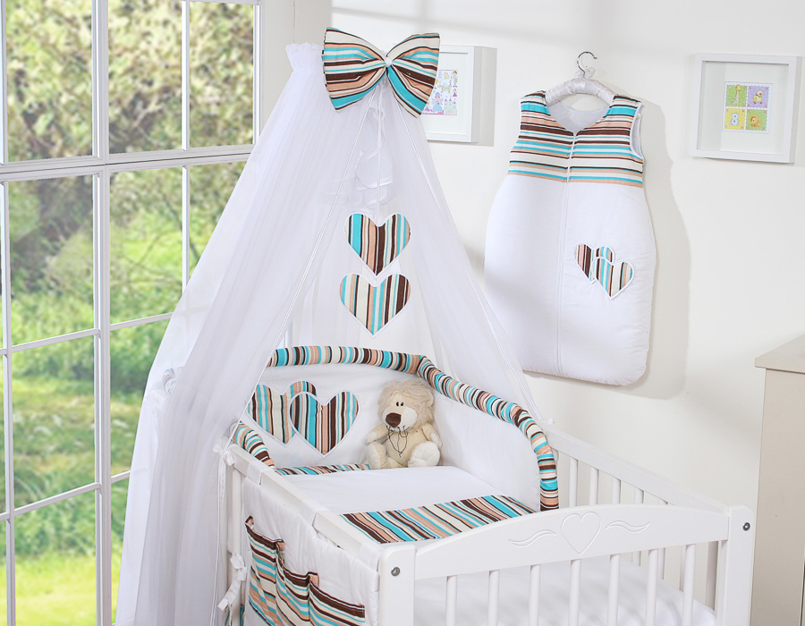 5-osainen vuodevaatesetti vauvalle + hyttysverkko - Hanging Hearts Musta Valkoisilla Pilkuilla89.58 €