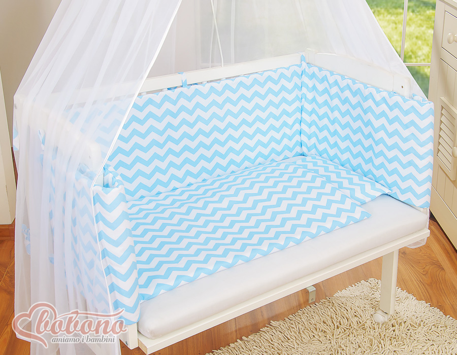 Etusivu » Pinnasänkyyn 120x60 cm » Vauvan sivusänky » Vuodevaatesetit sivusänky » 6-osainen vuodevaatesetti sivusänkyyn Sininen