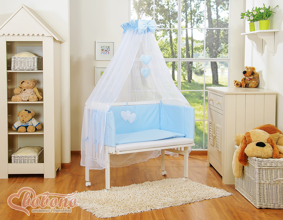 Etusivu » Pinnasänkyyn 120x60 cm » Vauvan sivusänky » Vuodevaatesetit sivusänky » 6-osainen vuodevaatesetti sivusänkyyn Sininen