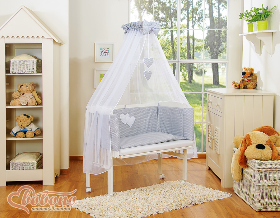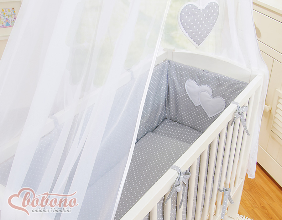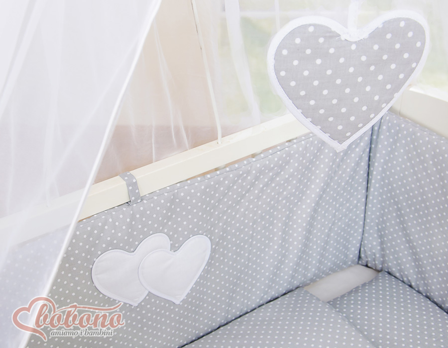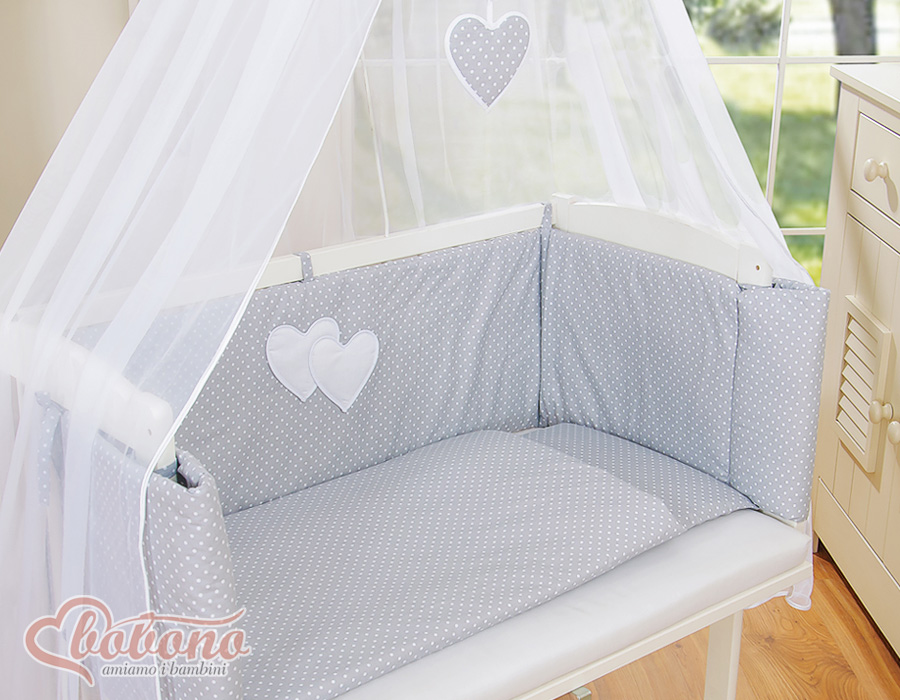 6-osainen vuodevaatesetti vauvan sivusänkyyn - FABIO Harmaa Valkoisilla Pilkuilla