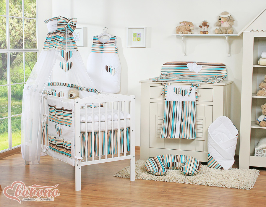 Etusivu » Vuodevaatesetit pinnasänkyyn » Vuodevaatesetit Sydämet » Vuodevaatesetit pinnasänkyyn 120cm Sydämet » 7-os Pussilakanasetti pinnasänkyyn Katosverho Sydämet » 7-osainen pussilakanasetti ja katosverho - Hanging Hearts Raidat