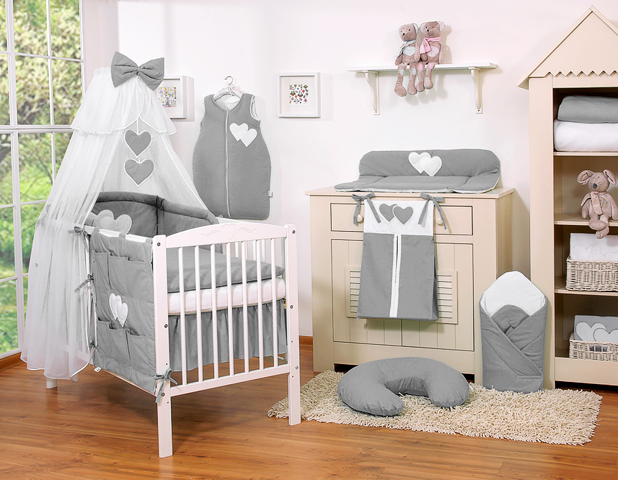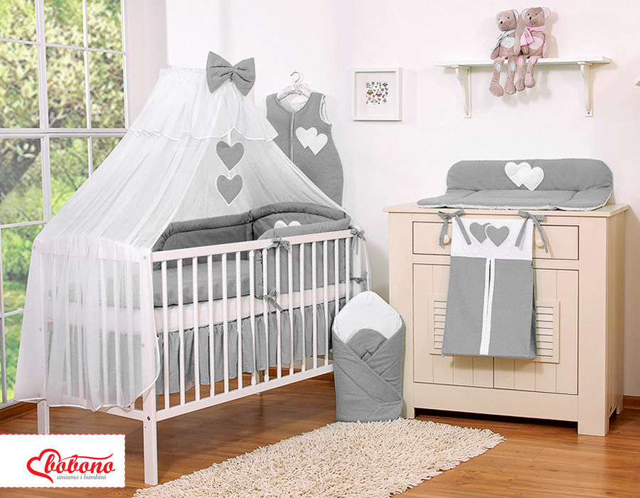 7-osainen vauvan vuodevaatesetti + katosverho - Leijuvat Sydämet Harmaa Valkoisilla Pilkuilla112.03 €