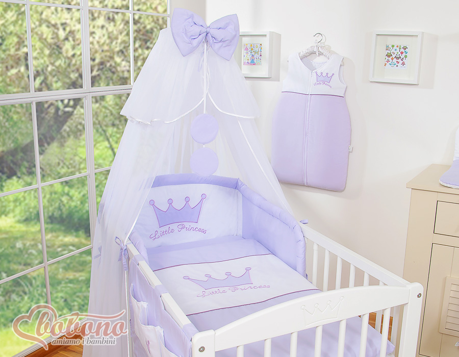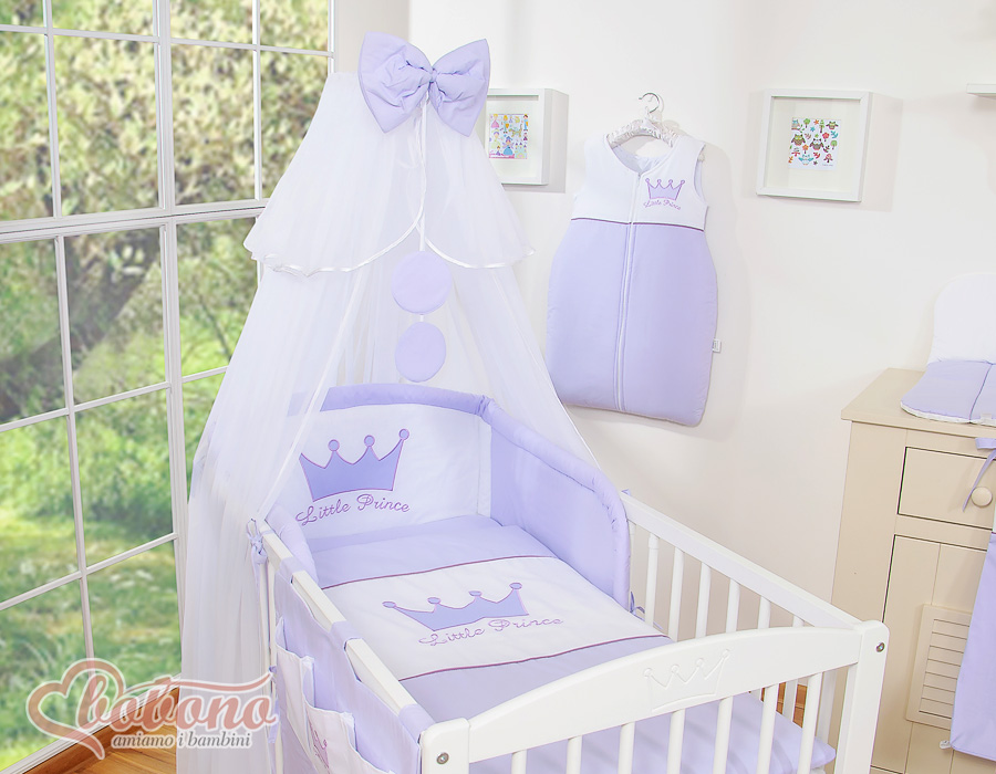 7-osainen vauvan vuodevaatesetti + katosverho - Little Prince/Princess Violetti