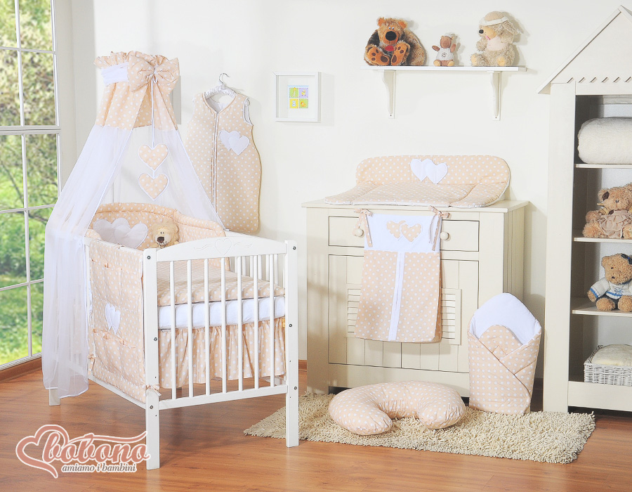 Etusivu » Vuodevaatesetit pinnasänkyyn » Vuodevaatesetit Sydämet » Vuodevaatesetit pinnasänkyyn 120cm Sydämet » 7-os Pussilakanasetti pinnasänkyyn Katosverho Sydämet » 7-osainen vuodevaatesetti ja katosverho - Leijuvat Sydämet Beige Valkoisilla Pilkuilla