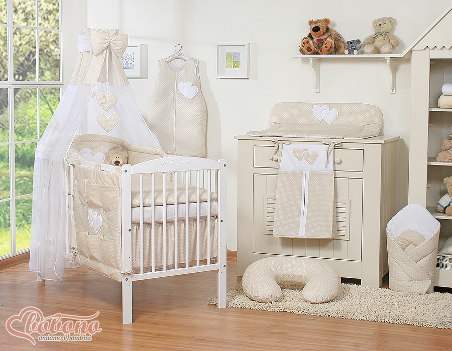 Etusivu » Vuodevaatesetit pinnasänkyyn » Vuodevaatesetit Sydämet » Vuodevaatesetit pinnasänkyyn 120cm Sydämet » 7-os Pussilakanasetti pinnasänkyyn Katosverho Sydämet » 7-osainen vuodevaatesetti ja katosverho - Leijuvat Sydämet Beige Valkoisilla Pilkuilla