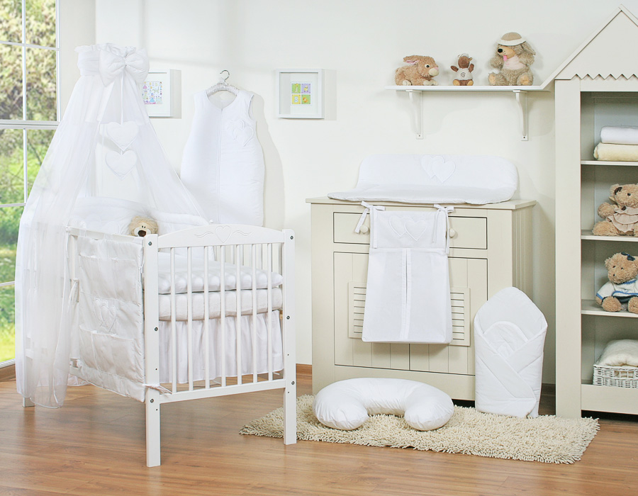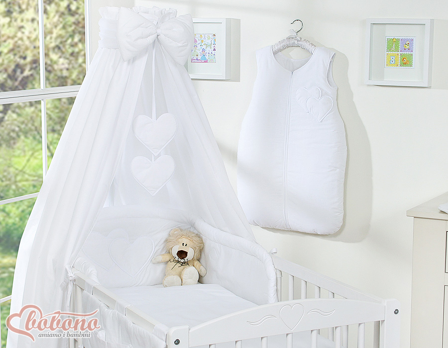 7-osainen vuodevaatesetti vauvalle + katosverho - Hanging Hearts