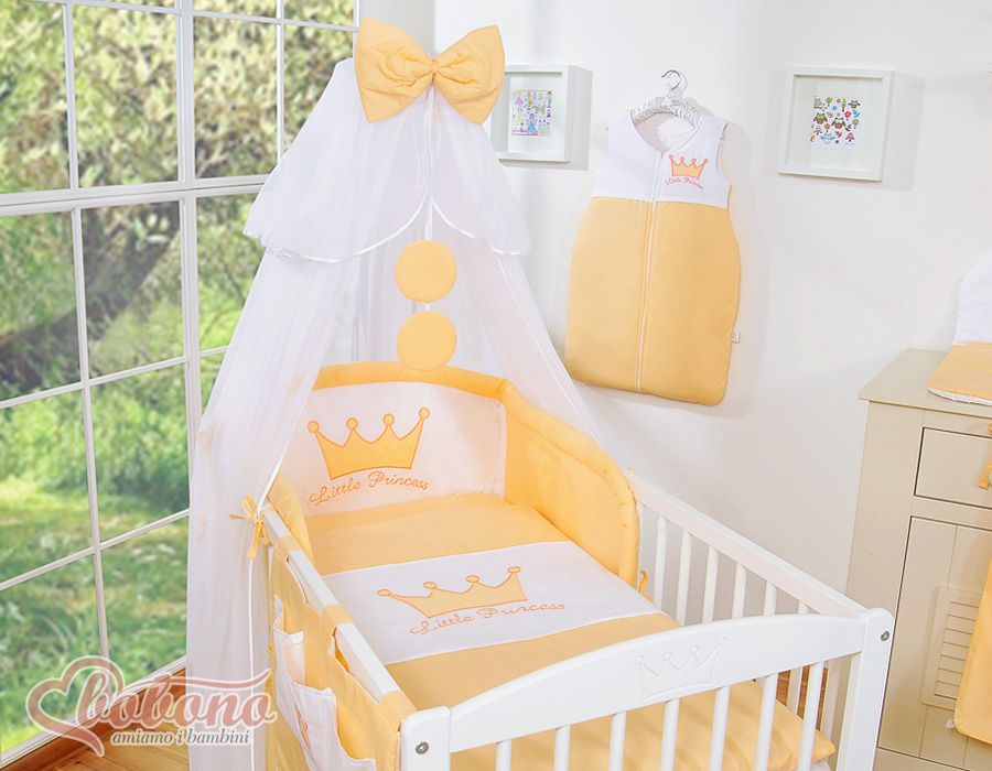 7-osainen vuodevaatesetti vauvalle + hyttysverkko - Little Prince/Princess