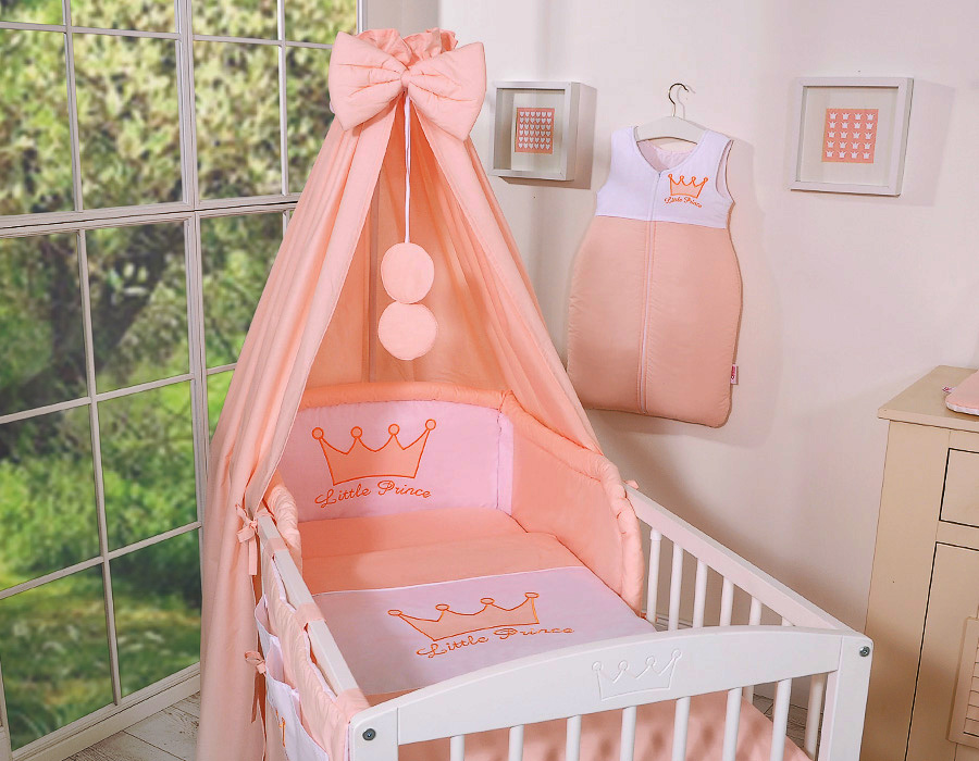 7-osainen vuodevaatesetti vauvalle + katosverho - Little Prince / Princess