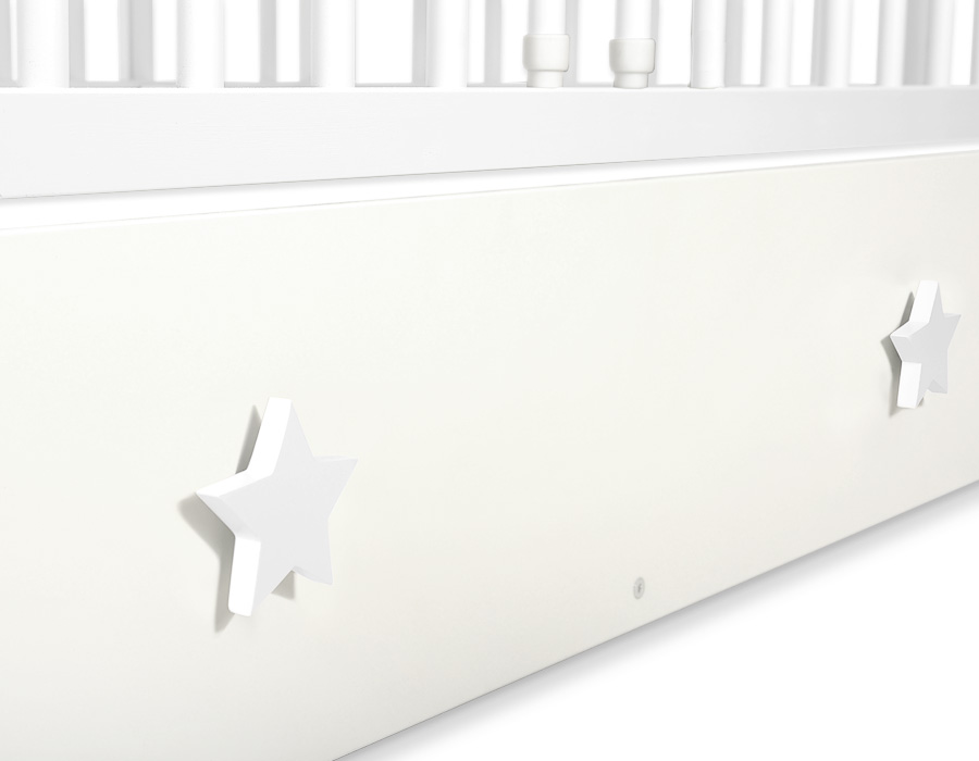 Vetolaatikko pinnasängyn alle (120x60cm) kauniilla käsityönä tehdyillä vetonupeilla. Säilytyslaatikko antaa lisää tilaa vauvan vuodevaatteille, leluille ja muille tarvikkeille, käden ulottuville.