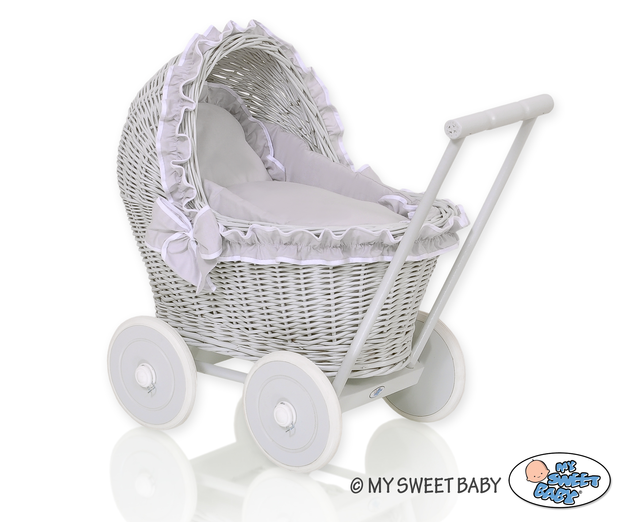 Etusivu » Lelut » Nukenvaunut » Punottu Nukenvaunut » Punottu Nukenvaunut Harmaa » Harmaa nuken vaunu korikehdolla Harmaa