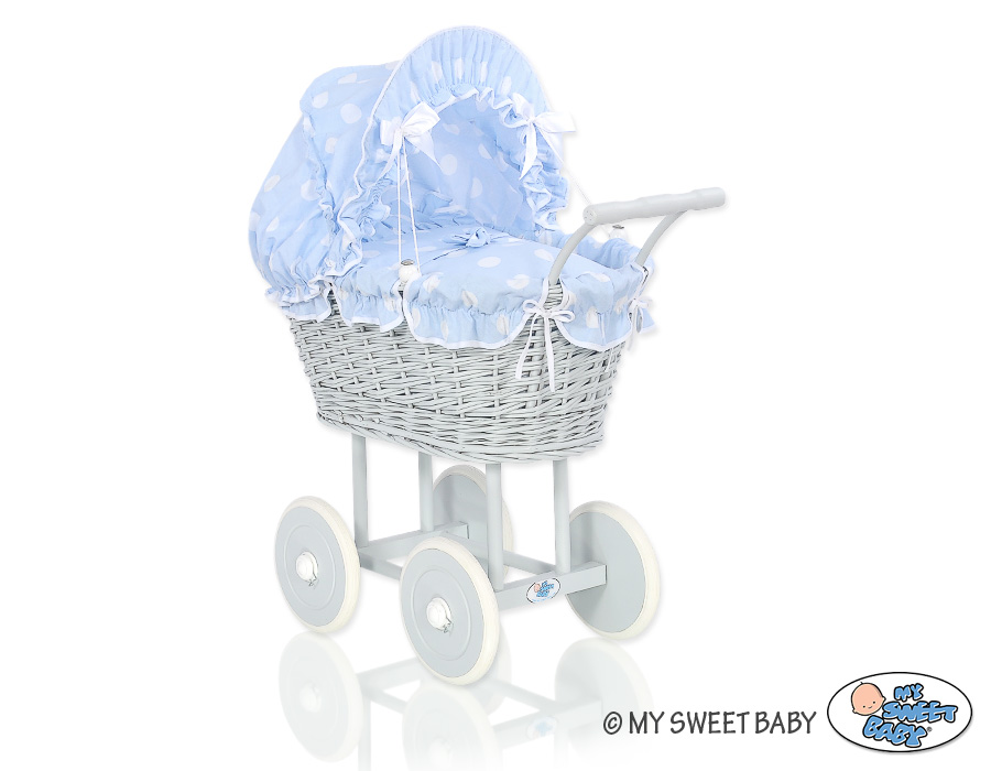Etusivu » Lelut » Nukenvaunut » Punottu Nukenvaunut » Punottu Nukenvaunut Harmaa » Harmaa nuken vaunu punotulla korilla ja pehmusteilla Harmaa
