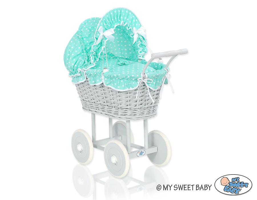 Harmaa nuken vaunu punotulla korilla ja pehmusteilla Minttu HarmaaHarmaa nuken vaunu punotulla korilla ja pehmusteilla Minttu HarmaaHarmaa nuken vaunu punotulla korilla ja pehmusteilla Minttu Harmaa